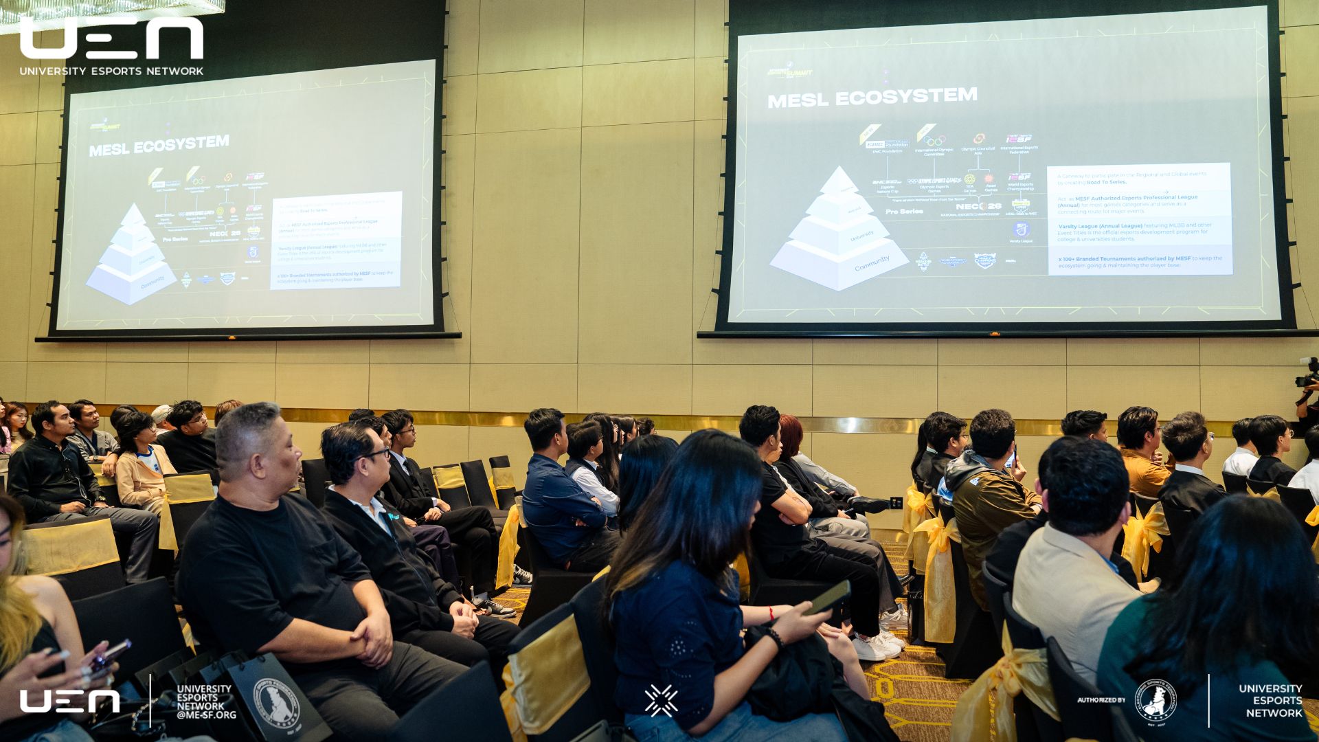 ယမန်နေ့ ၂၀၂၆ ခုနှစ်၊ ဖေဖော်ဝါရီလ ၁၈ ရက်နေ့တွင် Pan Pacific Hotel ၌ Myanmar Electronic Sports Federation (MESF) မှ ကြီးမှူးကျင်းပခဲ့သည့် "Myanmar Esports Summit 2026" သို့ UEN အဖွဲ့သားများ တက်ရောက်ခဲ့ပါသည်။